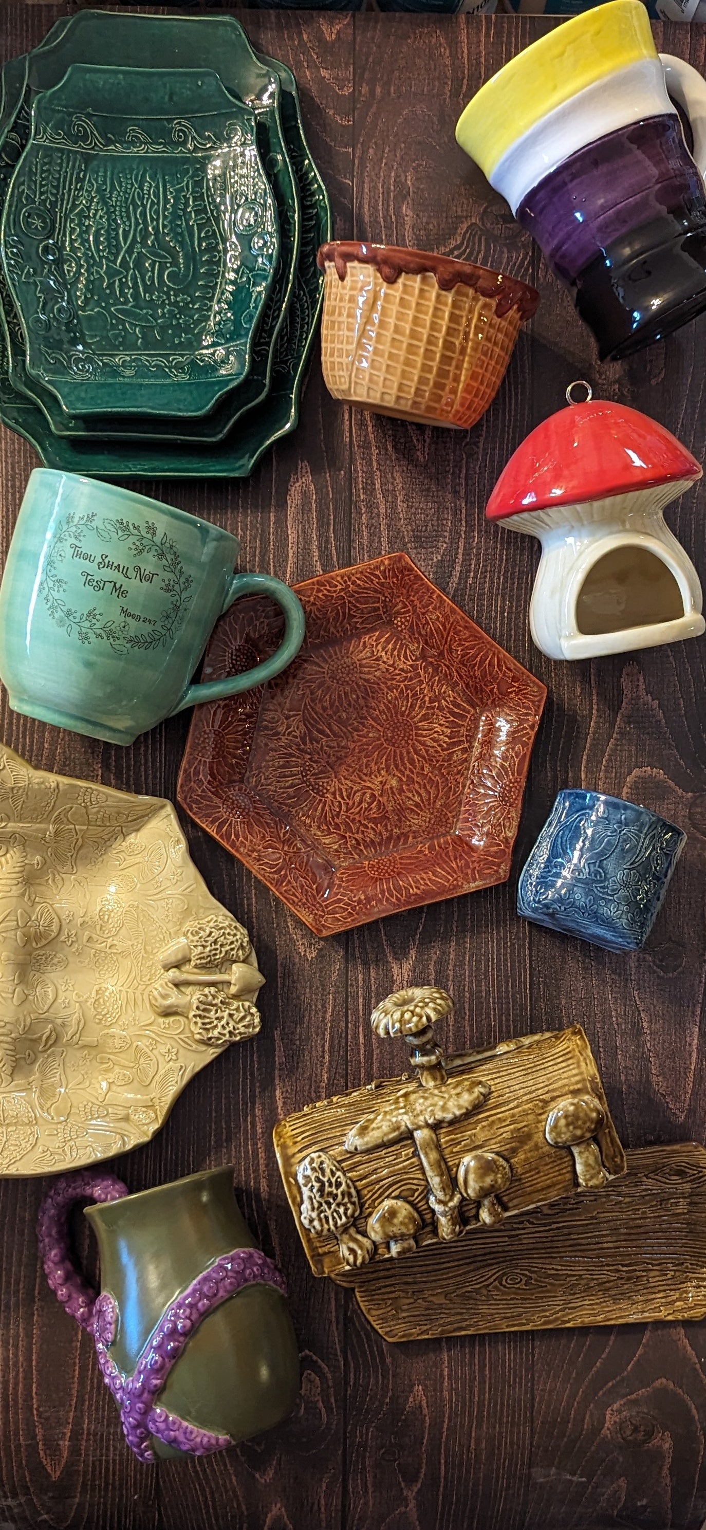 I learned ceramics like an old-school apprentice, at the feet of my grandmother who had a studio in the 1950s and 1960s, and many of the pieces I make incorporate now-vintage molds that she bought then. In the last few years, slab-rolled and hand-built textured pieces have been setting fire to my creative energies.