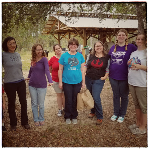 March Meet the Maker Day 17: Customers and Feedback. Here's a picture of me with some of my regular customers, in my back yard! These people, and others like them but who aren't within driving distance, are the heart and soul of HaldeCraft. My customers are fun, playful, thoughtful, talented, caring, smart, and I am constantly humbled by and championed by the community that has sprung up around my craft. The feedback they give me in invaluable in helping me know where to direct my energies, be it in new social media forms, product improvements, even shipping materials. I know to listen to these people not just because human beings deserve to be heard, but also because what they tell me is important and should be considered. If someone is bold enough to bring something to me, there's a nugget of something in what they say that I need to hear.