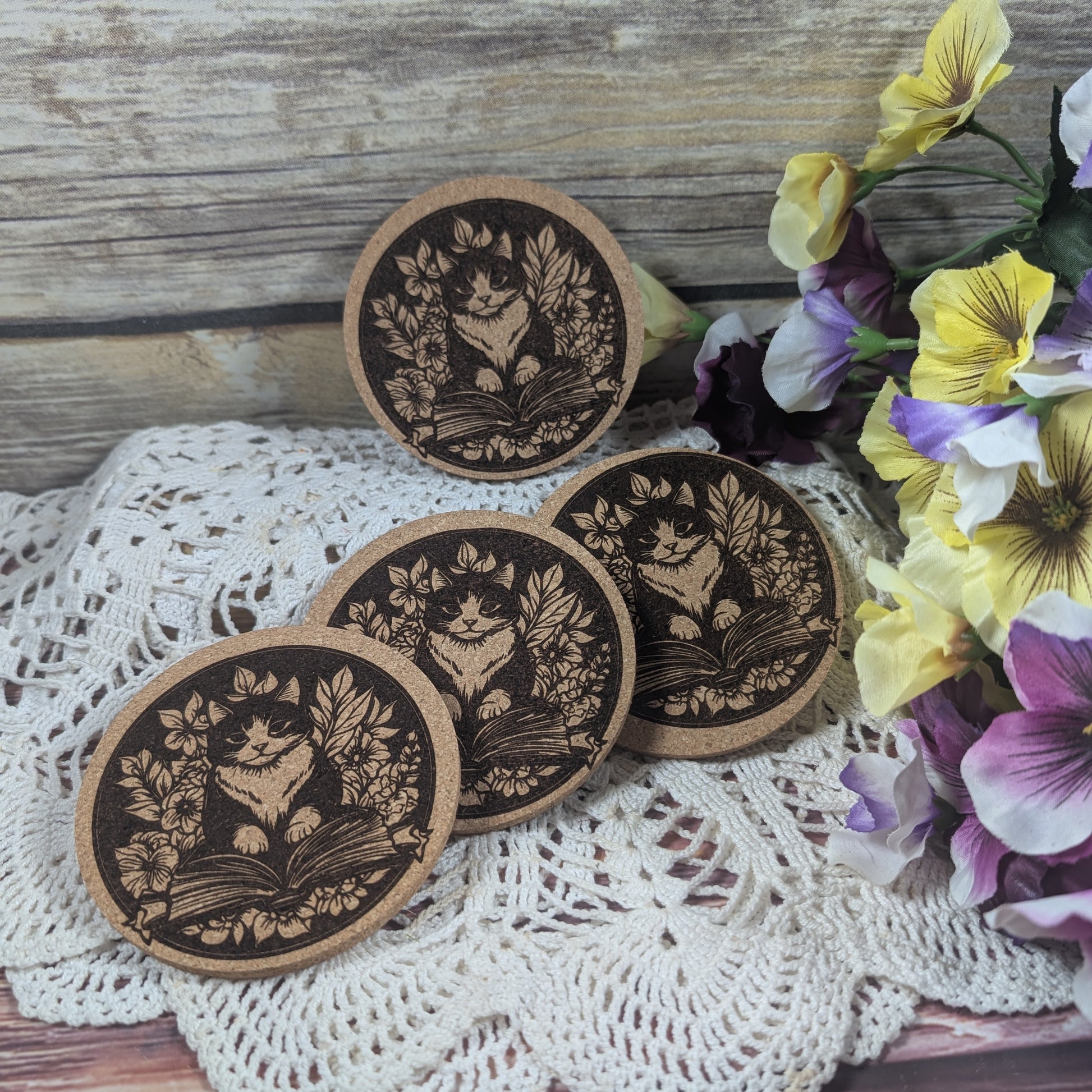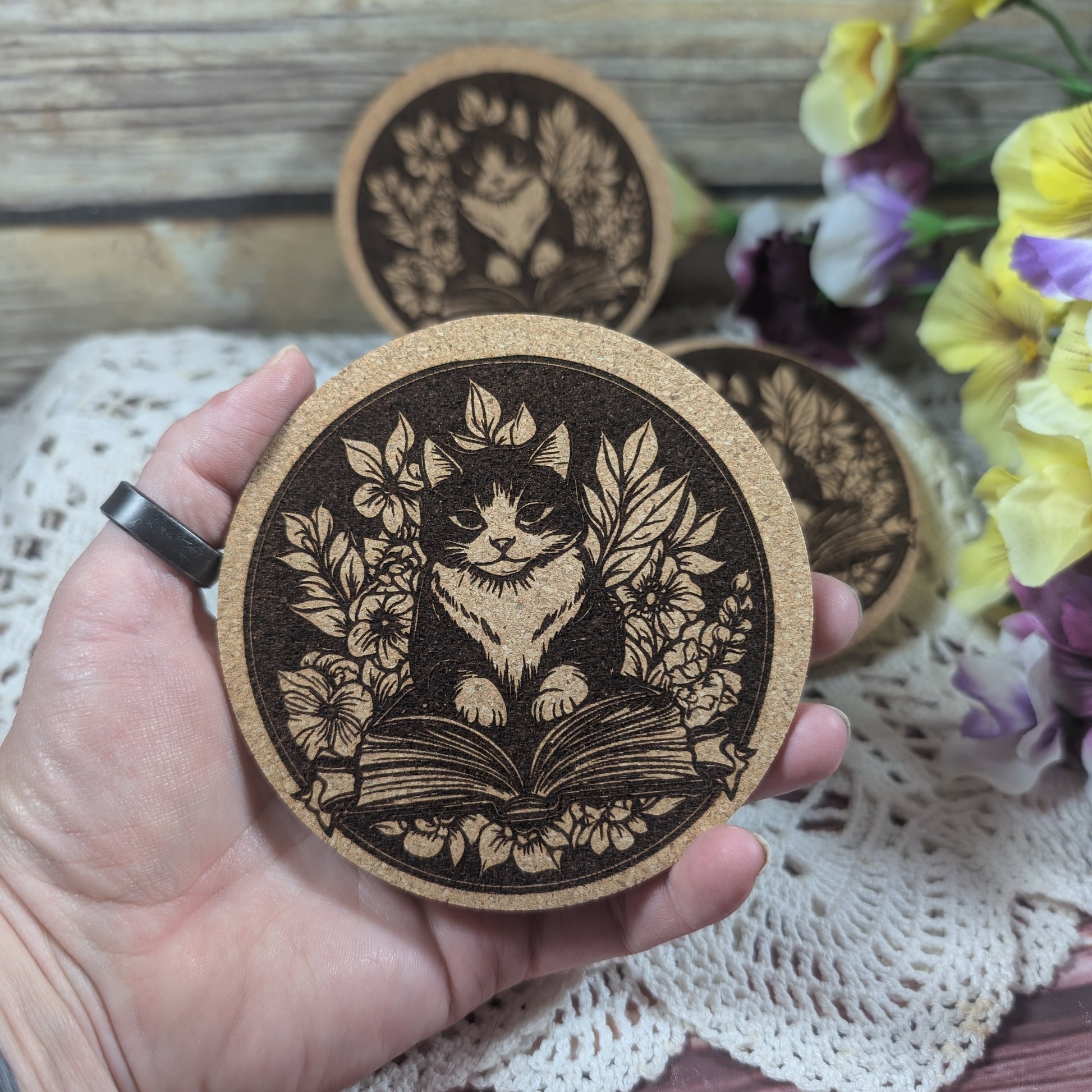 Cats. Books. Need I say more? OK, how about a cat, on a book, on a coaster, ready for your favorite drink on your little side table next to your comfortable chair?