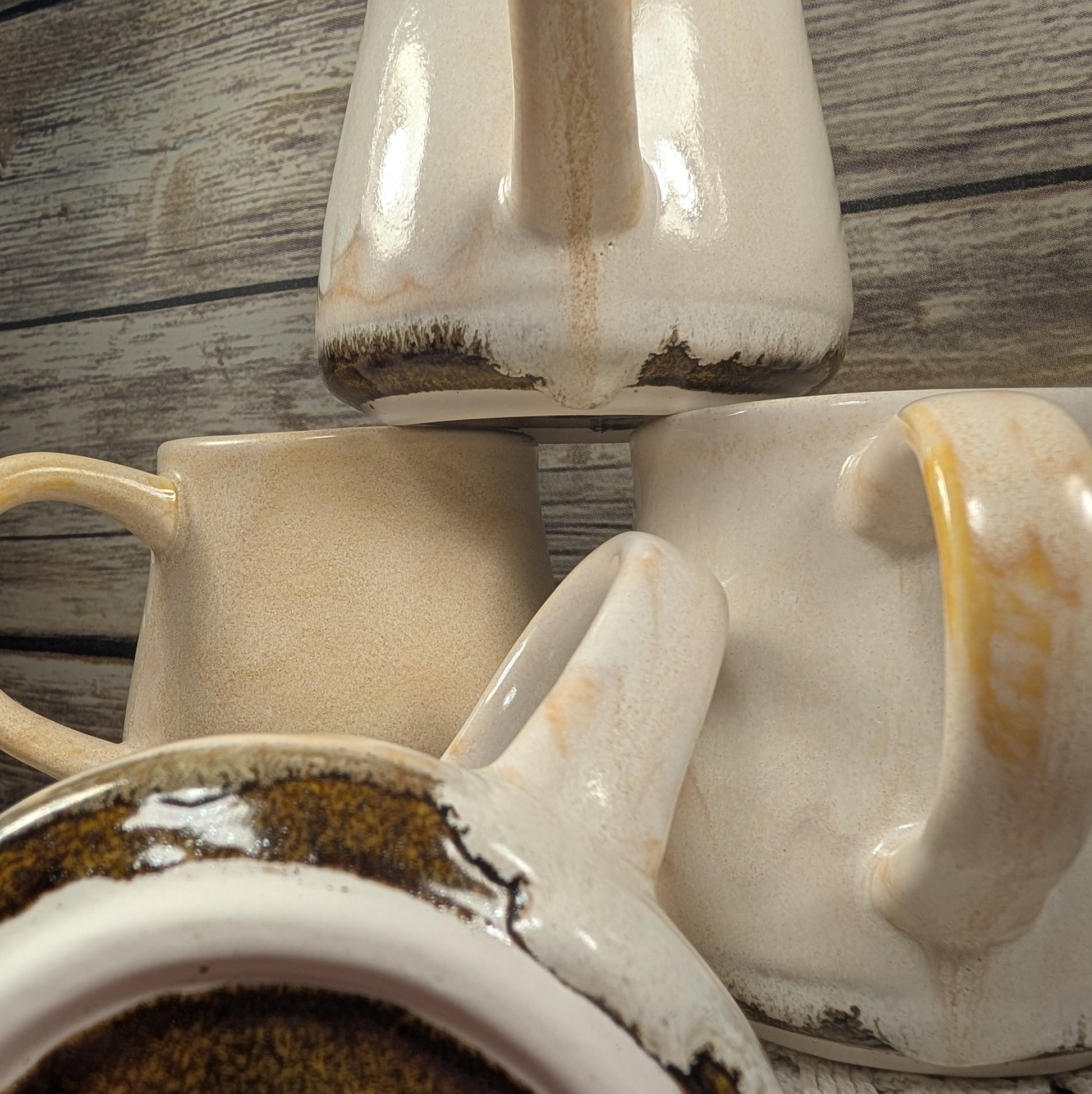 This mug just feels good in your hands. One hand on the handle, and one hand cradling the bottom of the other side. Ignoring the handle entirely, and just wrapping your hands around it. The slope of this mug is just perfect for holding onto! Plus, the color? Goes with everything but is also so subtle and changing. It's sure to become your go-to morning mug!