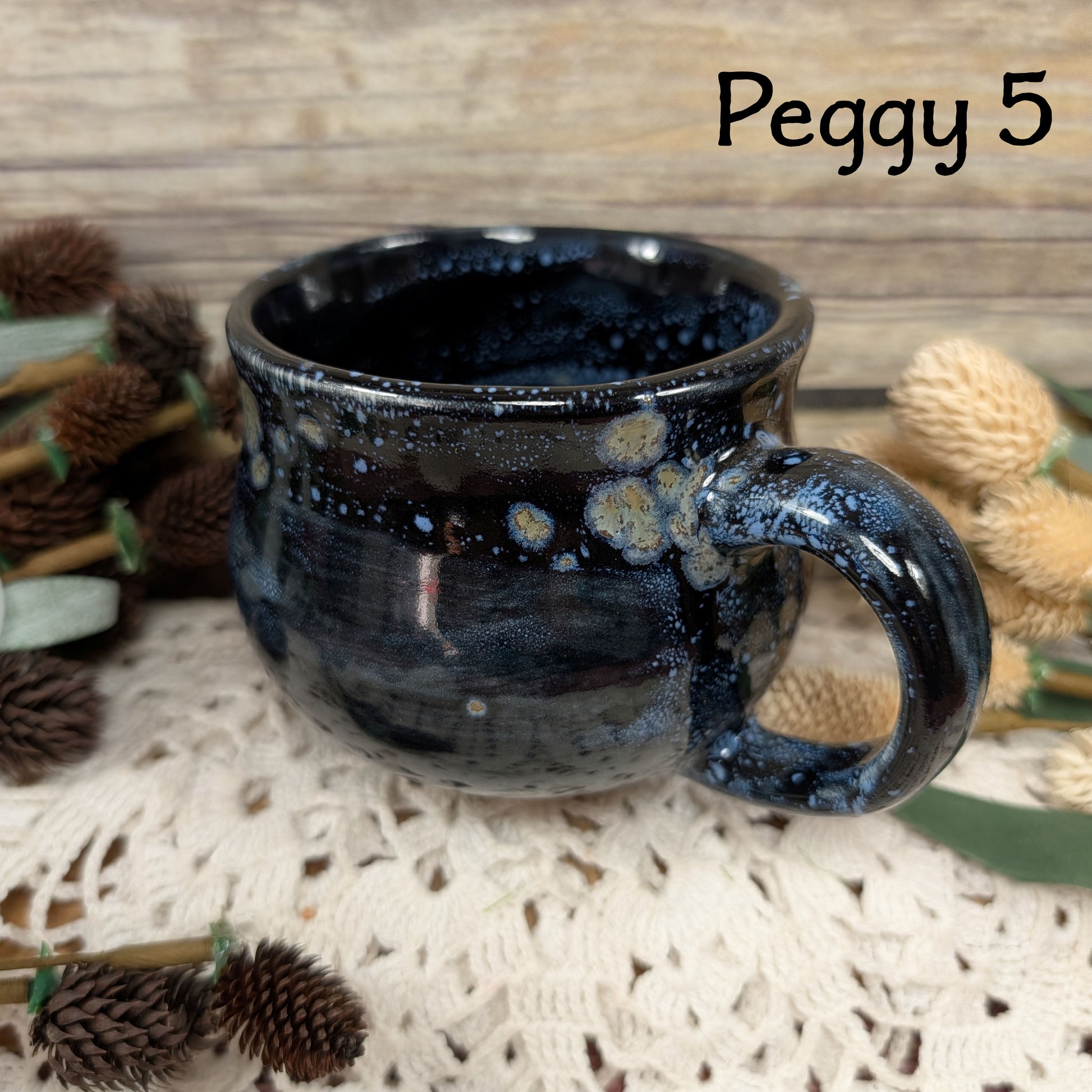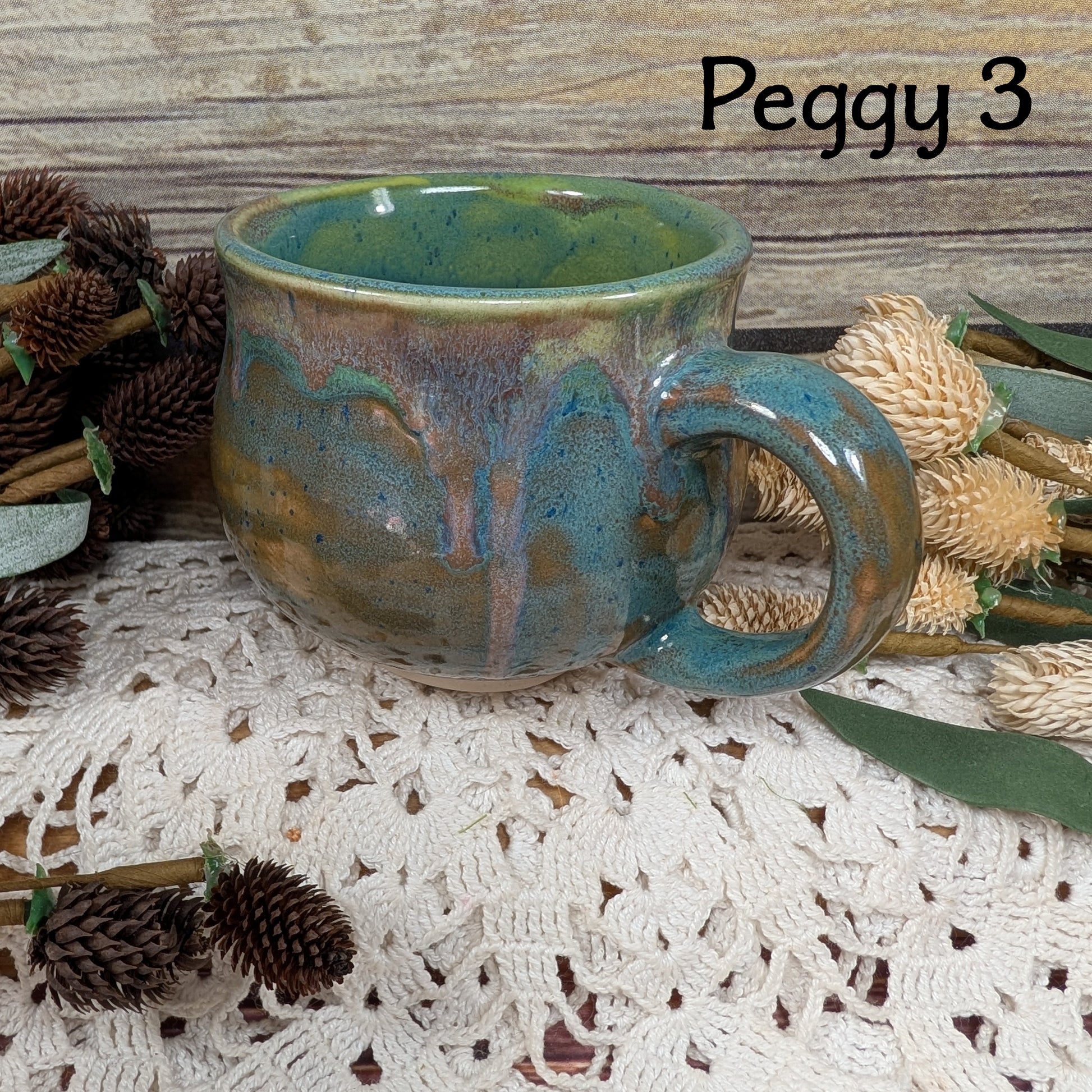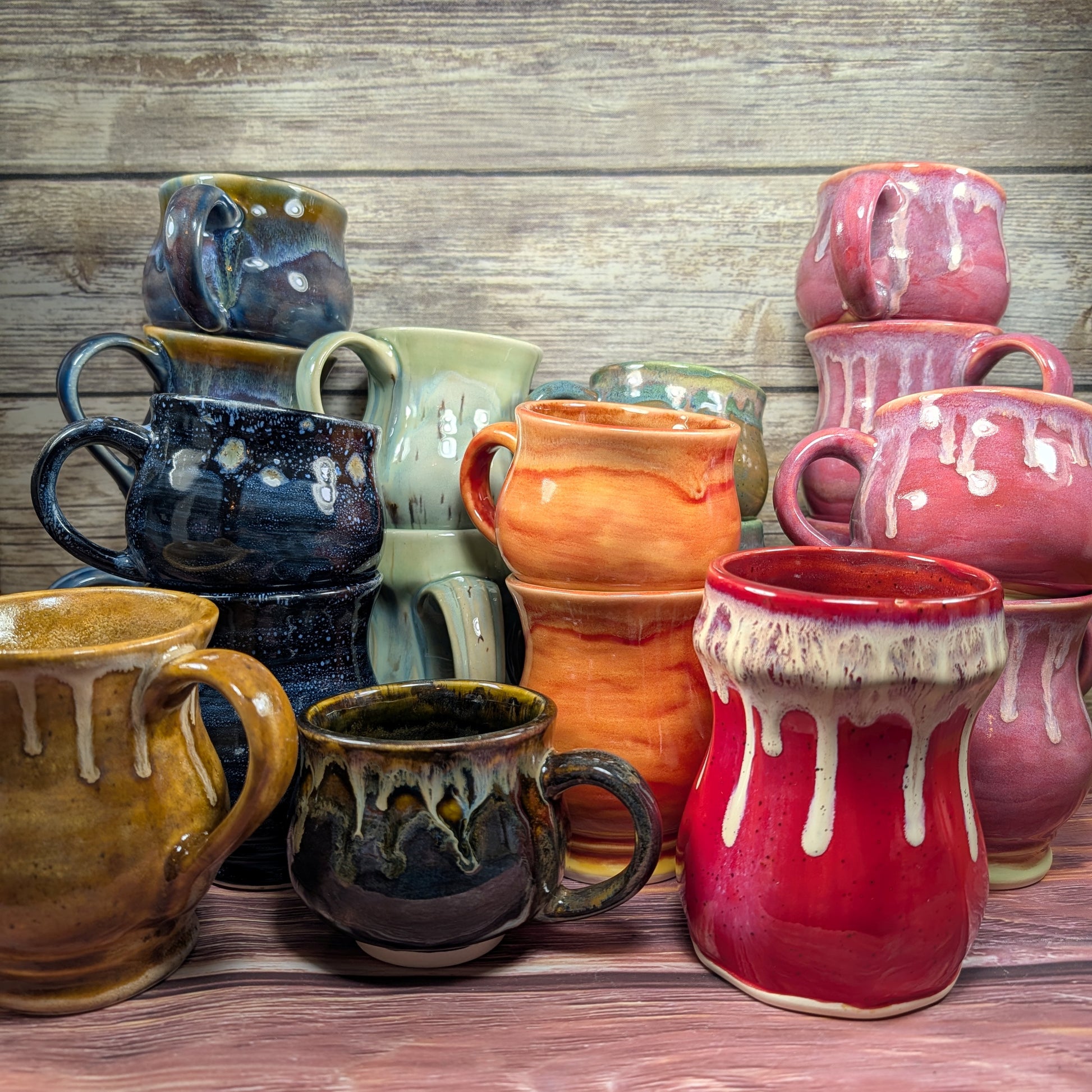 A note - These mugs are glazed with non-toxic glazes, and can be washed with hot soapy water or run through the dishwasher. While I have been known to put my own ceramics in the microwave, I don't officially recommend it -- the rapid change in temperature can cause the glaze to cool more quickly than the ceramic, which retains heat more than the glaze does, and so shrinks at a slower rate. This can occasionally call what is called "crazing" - small cracks in the glaze. This can happen immediately or even years later, and personally I've seen it happen on many of the commercial mugs I own that I put in the microwave often.