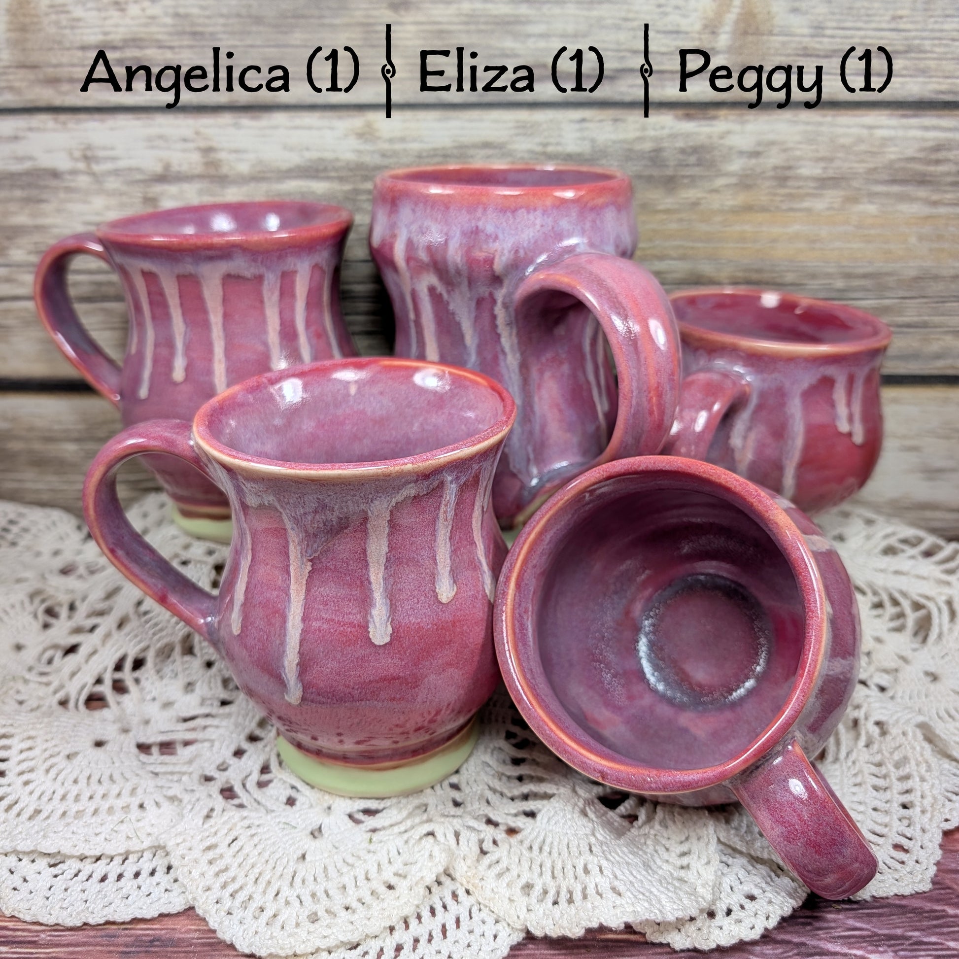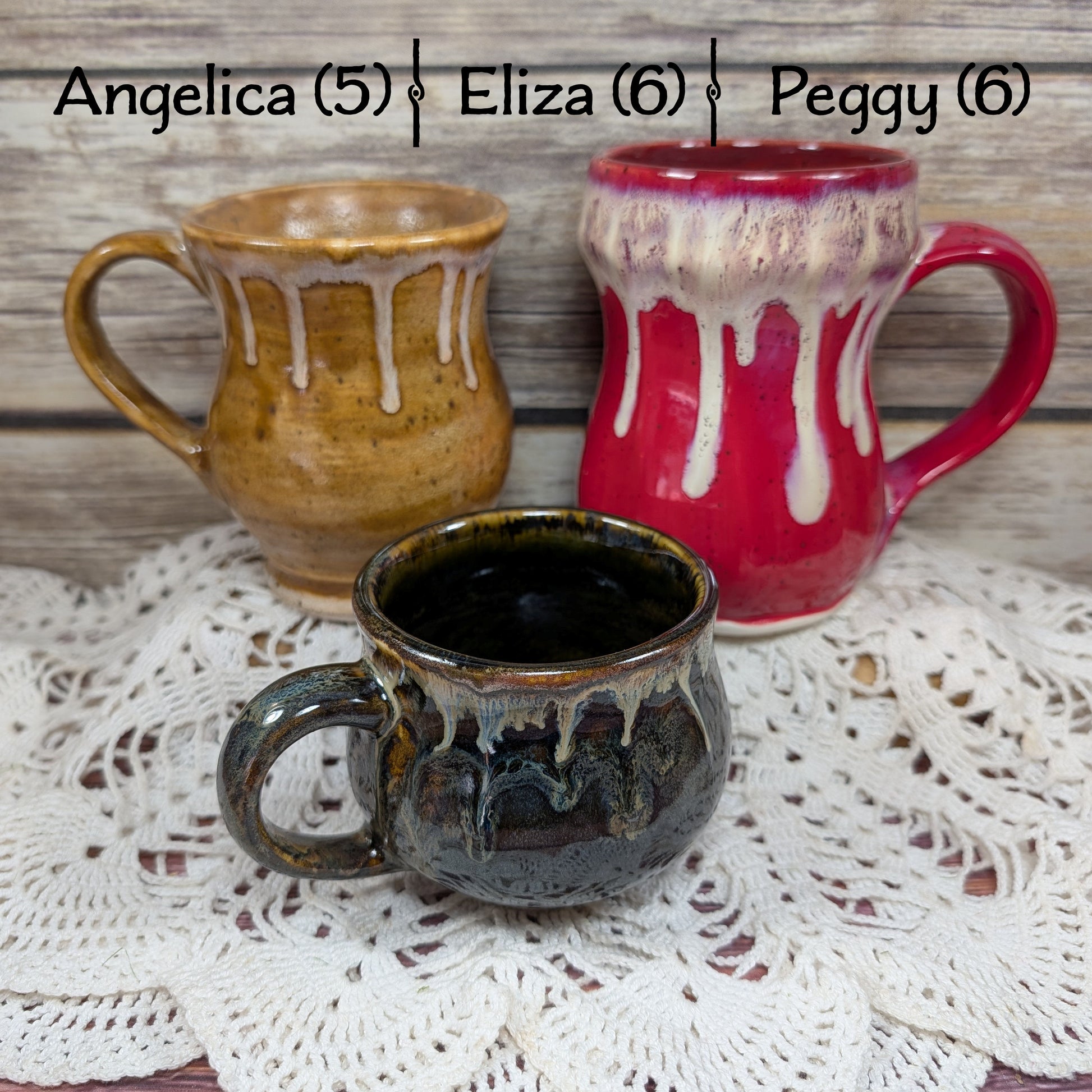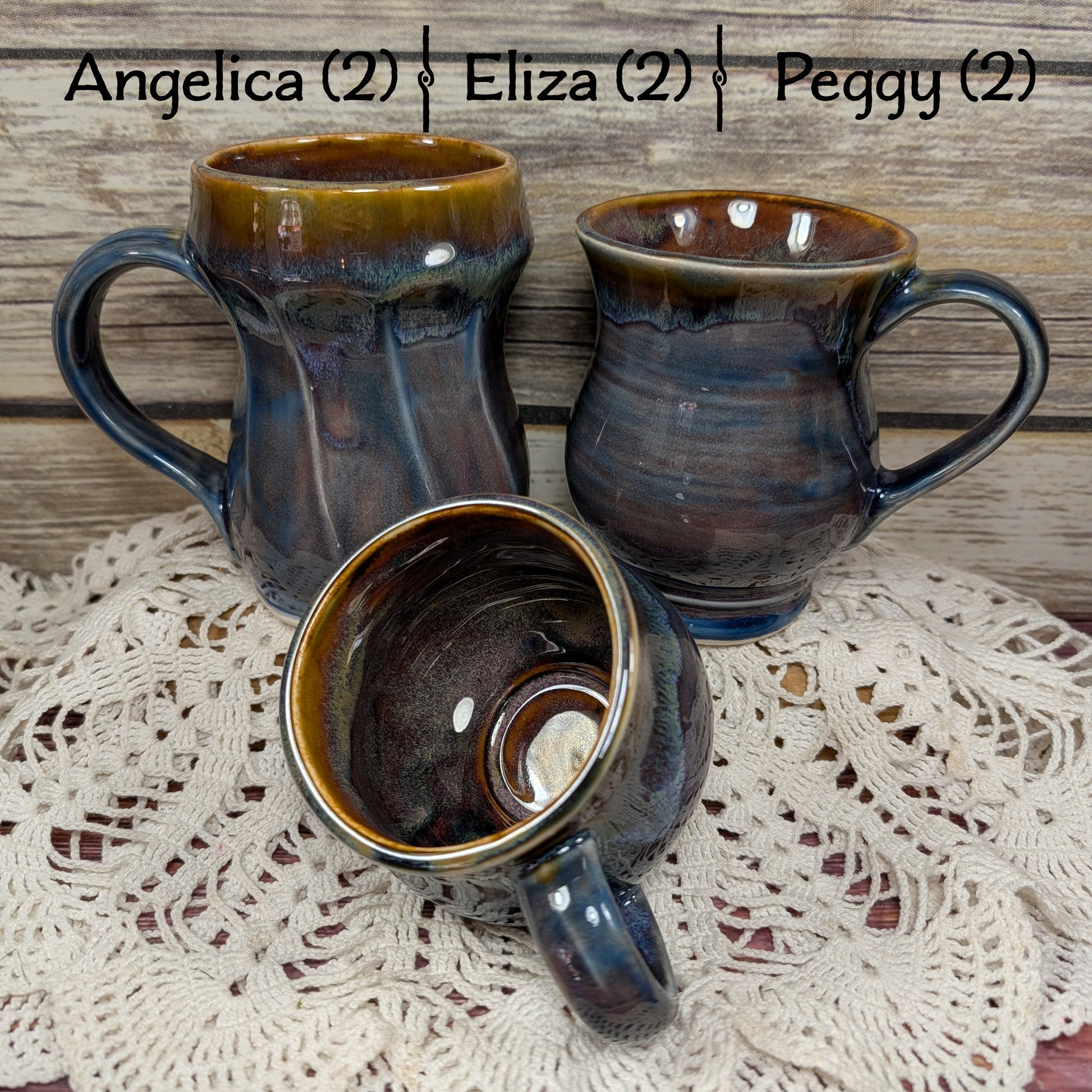 This month only, the last of the Sister mugs; Angelica, Eliza, and Peggy. Three different sizes, three different shapes, some matching, some not. These are the last of these lovelies, so grab them this month before they're retired!