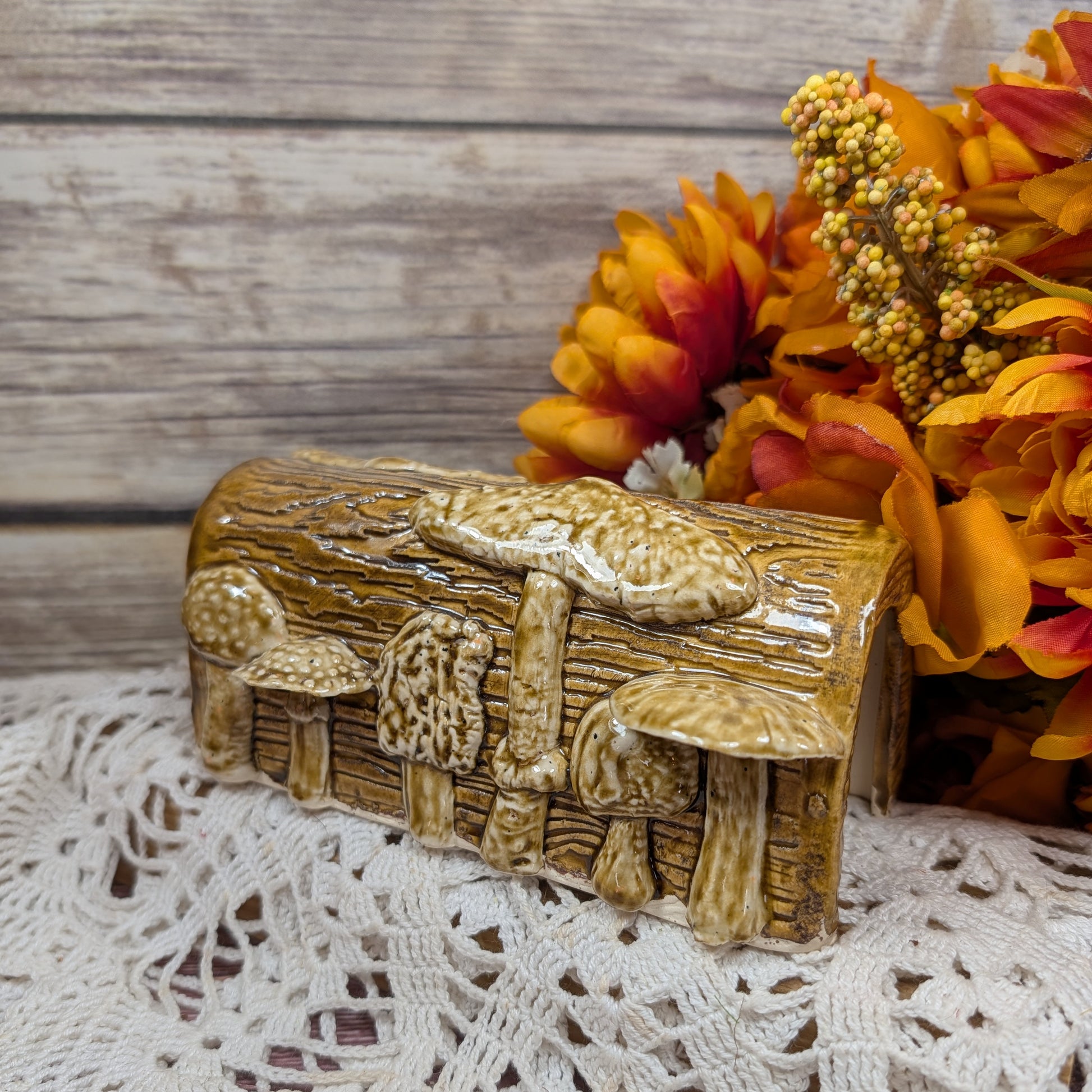 Each one of these is made by hand, and as such, will vary in door style used and mushrooms/tiny animals. The one photographed will always be the available one, however.